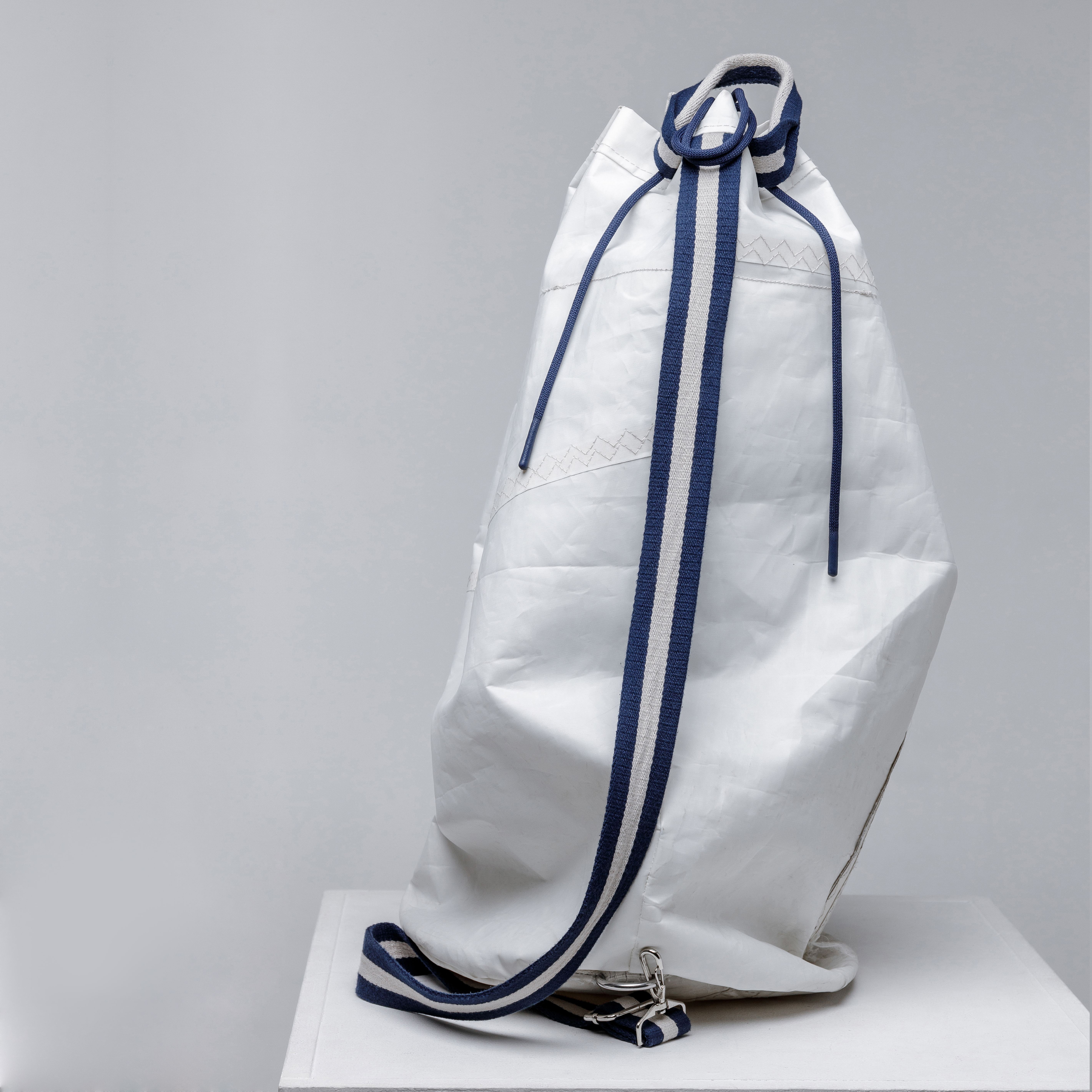 Каждый мешок уникален, так как мы используем только переработанные паруса, которые участвовали в различных регатах по всему миру. Это значит, что ваш аксессуар будет не только стильным, но и наполненным историей. Фурнитура, включая крепление ремня на такелажную скобу и пряжку из нержавеющей стали для регулировки длины, добавляет функциональности и удобства в использовании.